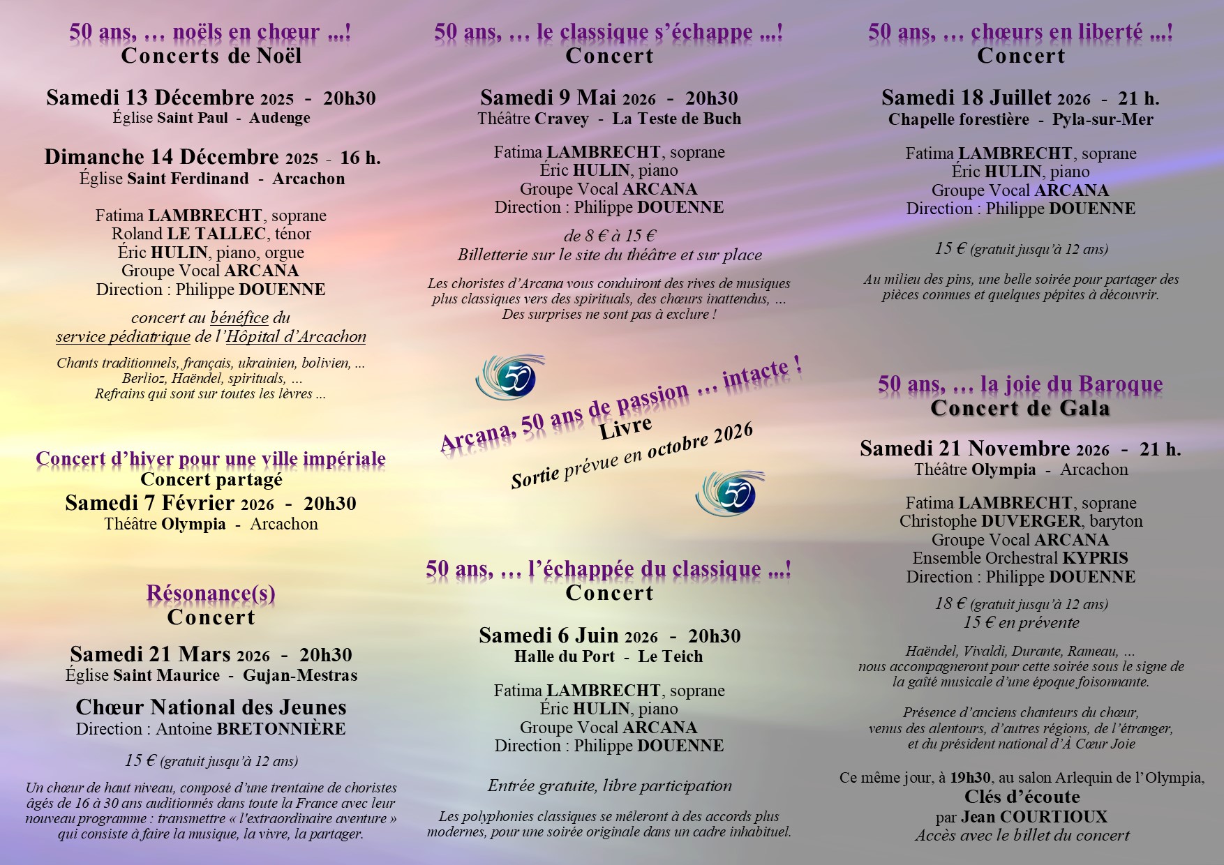 Le mois de novembre 2026, verra la clôture de la célébration des 50 ans par un concert de gala à l'Olympia : chœur et orchestre.